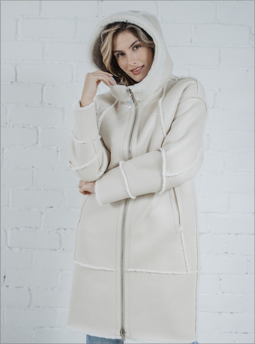 -Эко дубленка «Миллениум» капюшон бежевый цвета бежевый