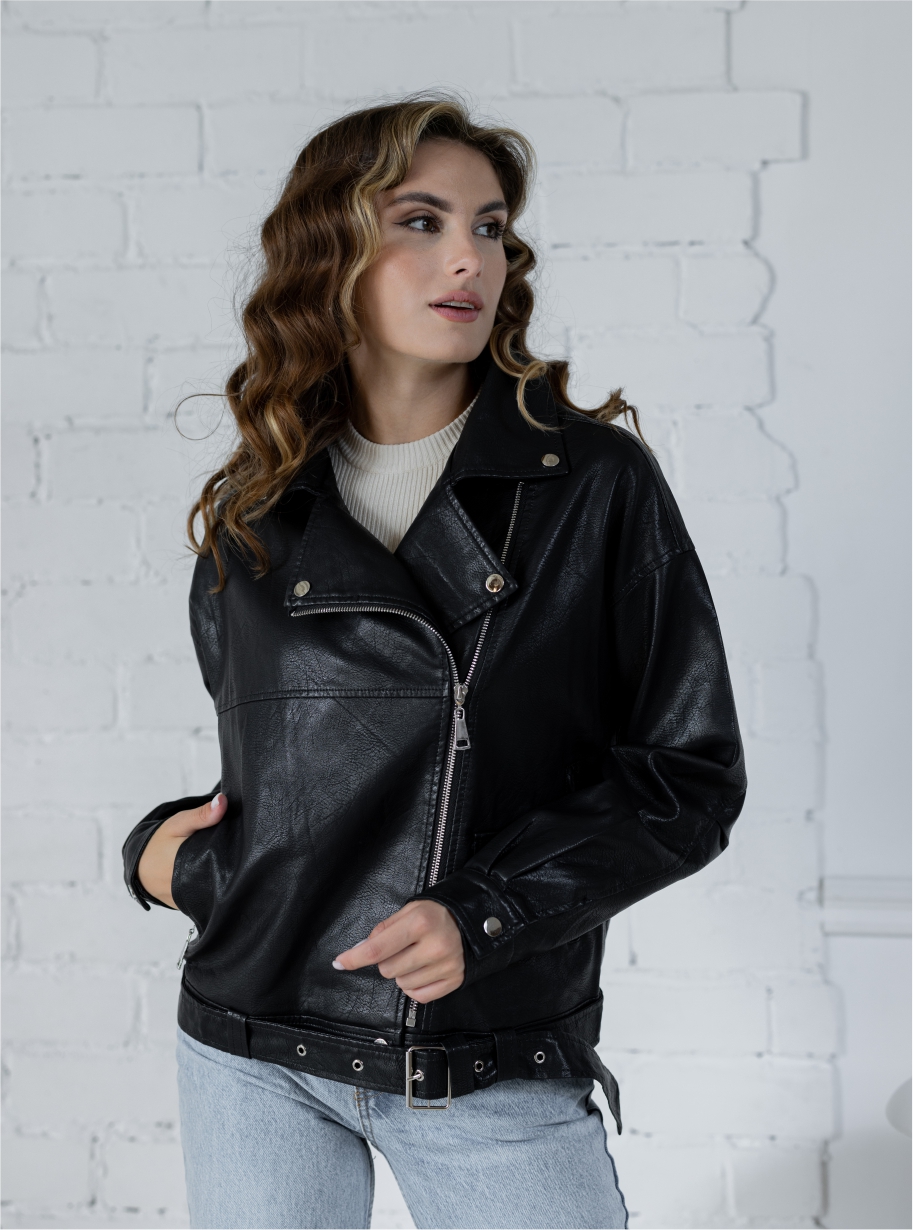 -Кожаная куртка 1660 "Пилот2" цвета черный