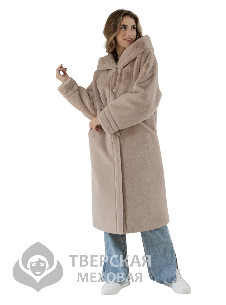 Шуба из эко меха "Аннабель" капюшон пудровый 110
