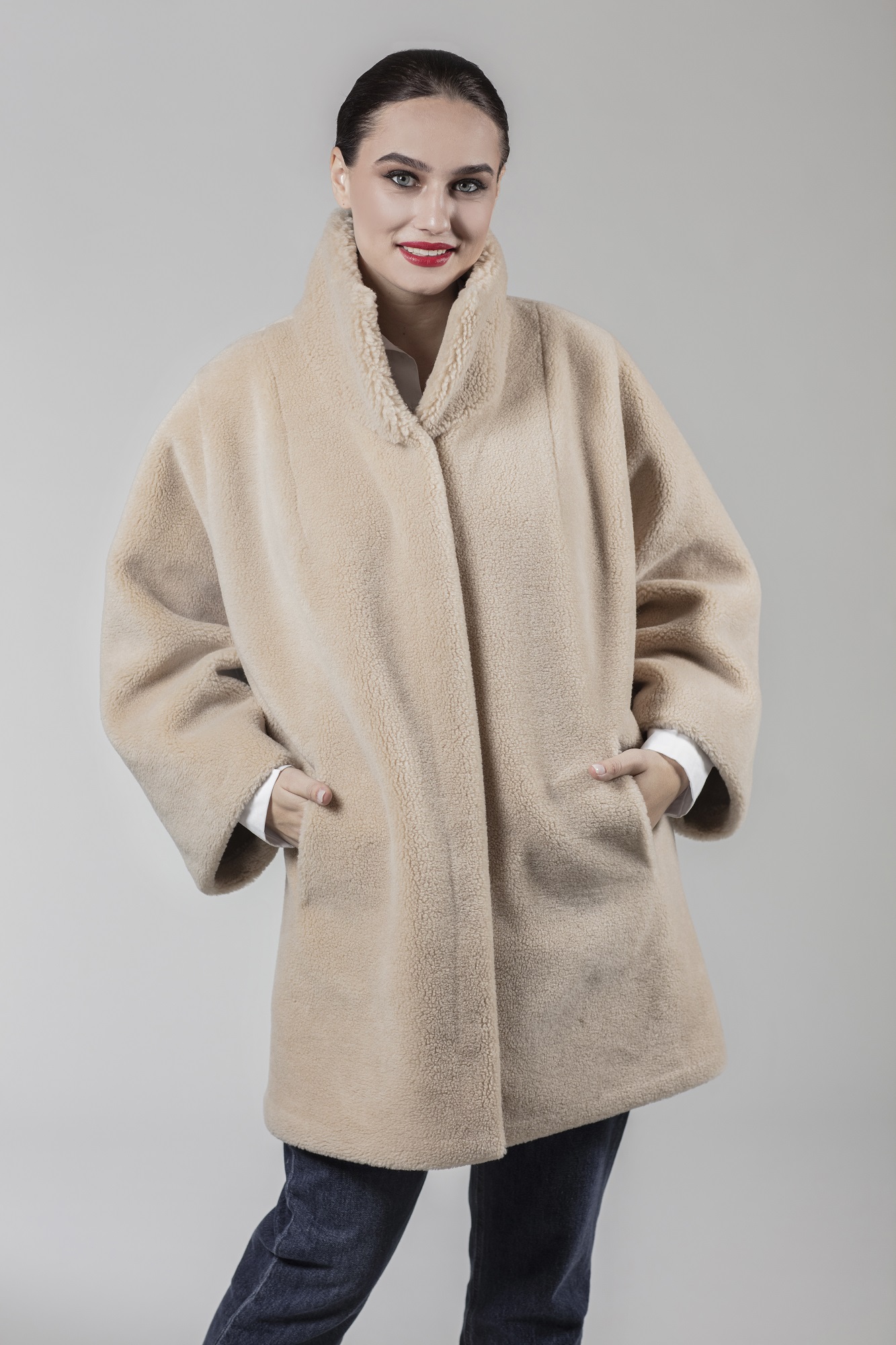 Яркое и современное полупальто «Эшли» из мягкой шерсти и полиэстера с объёмным воротом-стойкой. Новинка весьма удобна и функциональна. Она слегка заужена книзу, что защитит вас в ветреную погоду. Сложный силуэт изделия, в сочетании с объёмными рукавами, придадут образу неповторимую лёгкость. Спокойный бежевый цвет отлично гармонирует с любыми кожаными перчатками, любом принтом на Вашем шарфе или платке. Носите это изделие с удобными джинсами, брюками, дизайнерским платьем или юбкой - ваш образ всегда будет актуален.