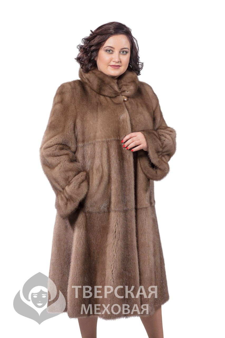 Норковая шуба "Белла" воротник махагон 110 цвета махагон