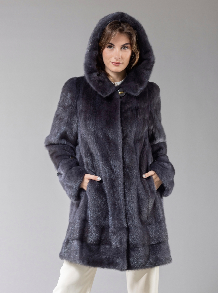 Норковая шуба "Джаз" воротник сапфир цвета сапфир