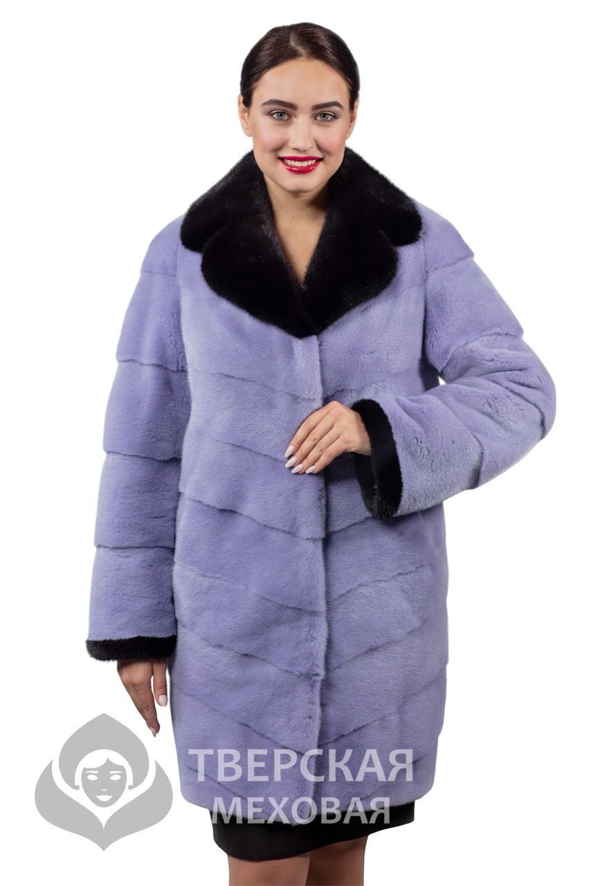 Стильная норковая шуба из меха премиального качества. Мех закуплен на крупнейших пушных аукционах Kopenhagen Fur и SAGA furs. Мех пушистый, мягкий с плотной подпушью. Силуэт изделия прямой с модным поперечным расположением шкур. Норка в сиреневом цвет выглядит еще эффектней, а в сочетании с английским воротником из черной норки изделие смотрится модно и ярко. Дополнить свой образ можно, например, стильной шапкой-ушанкой. Только на аукционную норку премиального качества распространяется расширенная гарантия до 2 лет.